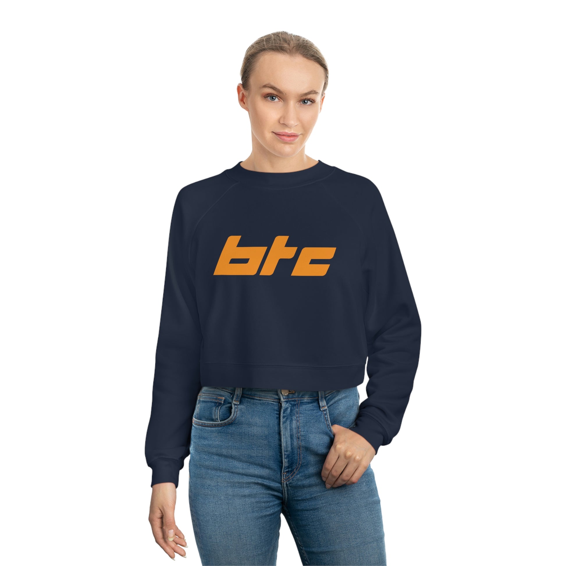 Step up your streetwear game with the Bitcoin Block Fleece Crop Sweatshirt. This stylish and lightweight crop sweatshirt is made from a breathable cotton-polyester blend and features bold, block futuristic lettering of "BTC" on the chest. Perfect for a casual athleisure look, this unique cropped piece is sure to make you stand out in the crowd! Go beyond traditional fashion and show off your contemporary style in the BTC Crop Sweatshirt.